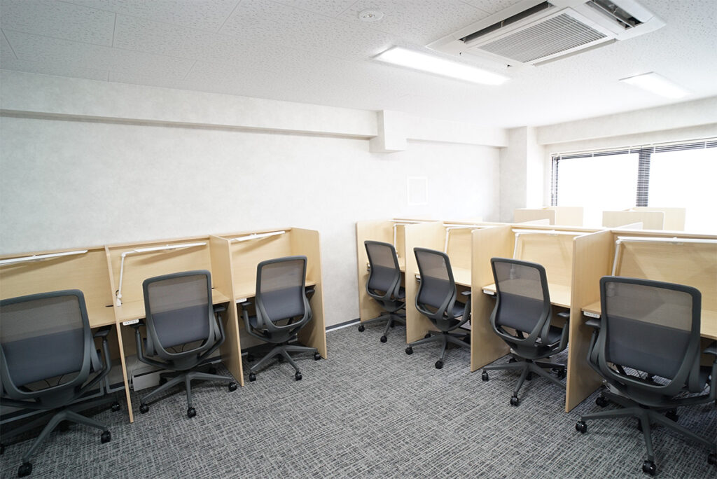 ブース席が並ぶ「ワークスペース」では会話や食事はNG。思い切り勉強に集中することができ、その日の気分に応じて使い分けることが可能です!
